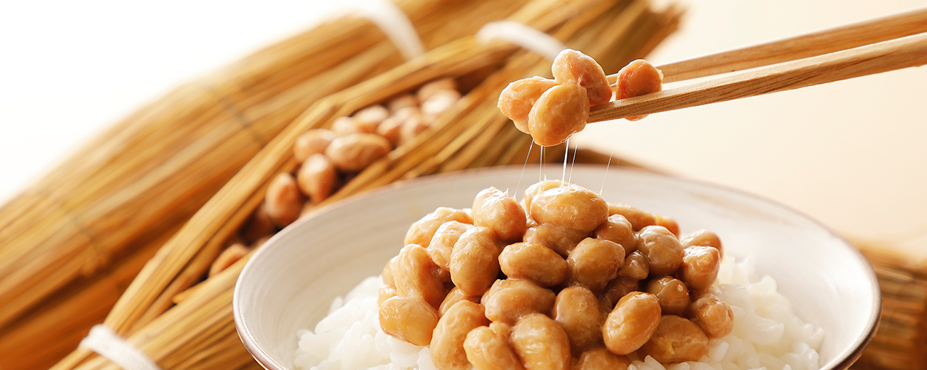 血液の凝固に不可欠なビタミンKや大豆由来のタンパク質に加え、食物繊維も豊富に含まれており、整腸作用があると考えられている納豆は、納豆菌そのものが含まれているため、優れたプロバイオティクス(健康維持に有効な微生物)としての効果が期待されています。