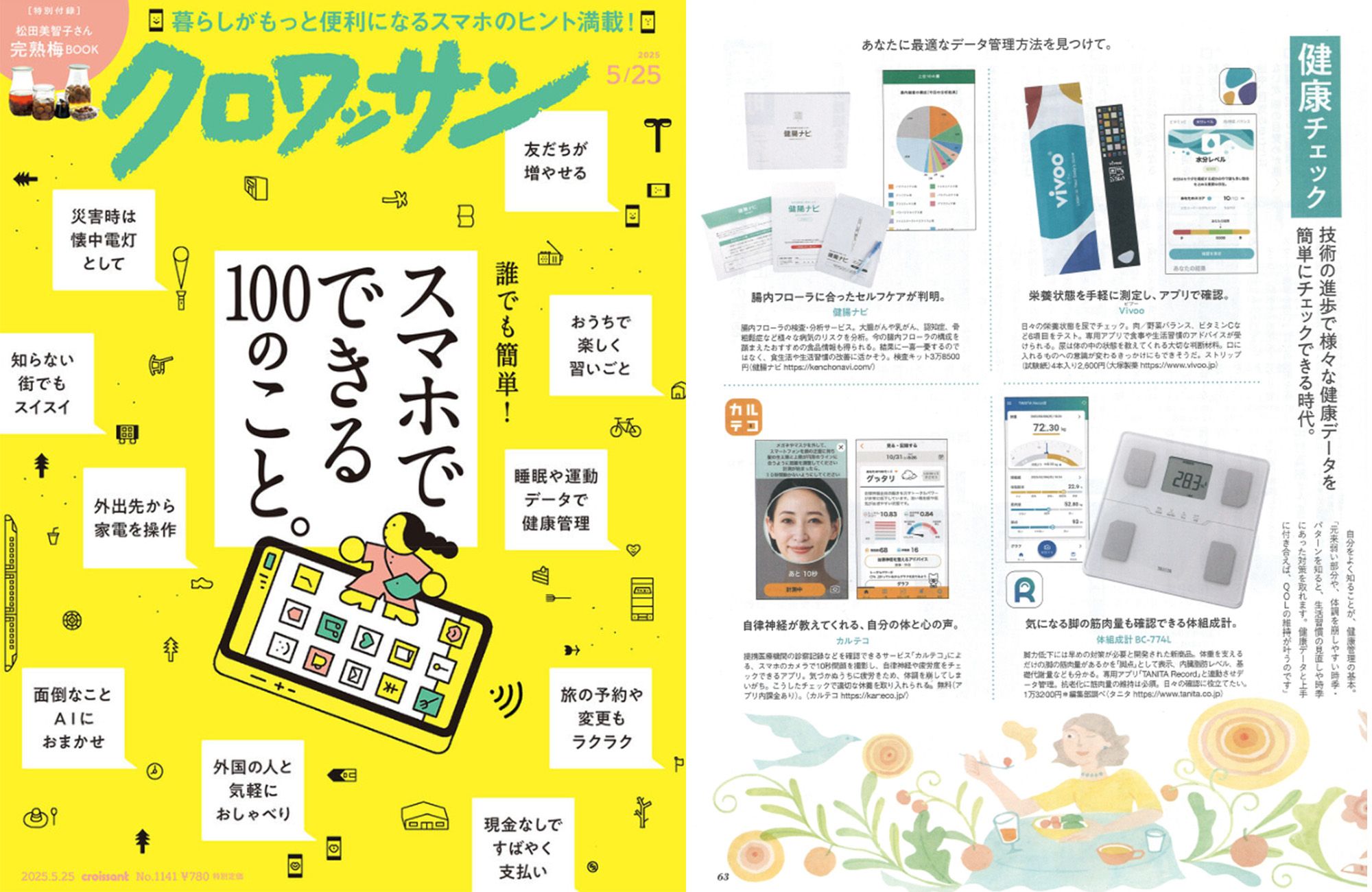 2025年5月10日(土)に発売されたライフスタイル雑誌「クロワッサン」に腸内フローラ検査「健腸ナビ」が掲載されました。